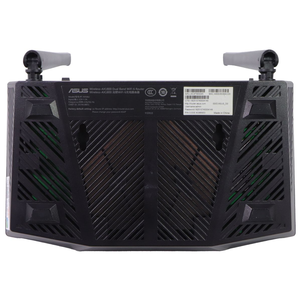 The ASUS RT-AX56U AX1800 WiFi 6 Dual-Band WiFi Router. Black Version.