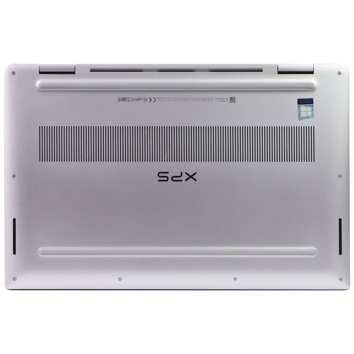 The Dell XPS-15 9575 (15.5-in) UHD Touch Laptop. Model: P73F. Windows 10 Pro. Silver laptop color.